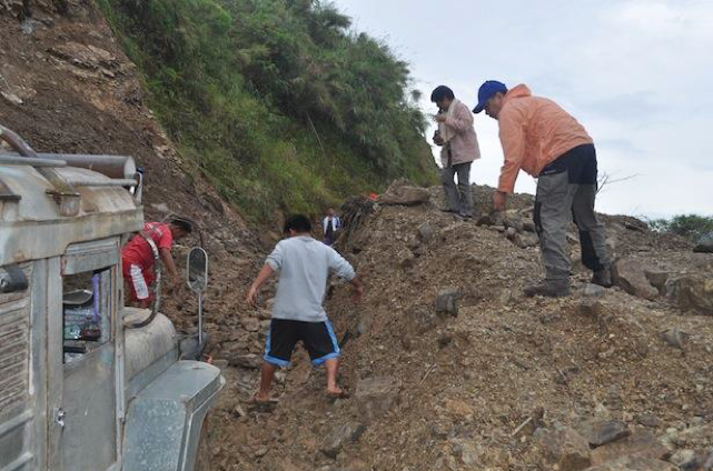 Indeed, it basically took us 2 days to reach Balbalasang from Bangued. We started from Bangued early on time, confident of reaching our field location the very same day. That was without counting with the recent heavy rains – which had made the roads extremely muddy and of course soon got our jeep stuck. After having hired an experienced local driver with a more powerful vehicle, we started again the next morning; and again we got stuck. Villagers around tried to help – in vain – and it finally took a bulldozer from the local Department of Public Works and Highways to free us. To make the experience complete, we were granted a