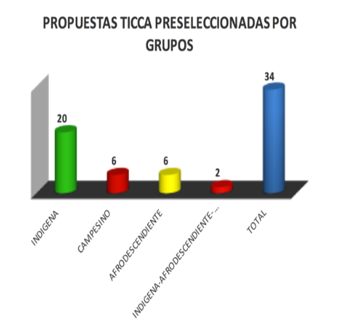 La respuesta a la convocatoria fue amplia: se recibieron 487 propuestas que fueron evaluadas según una metodología diseñada con criterios de selección pertinentes, contando adicionalmente con un comité técnico asesor convocado por el PPD y en el que la organización estratégica, en representación del Consorcio TICCA, participó activamente. Posterior a la evaluación de las propuestas por parte de los miembros del comité técnico asesor, se realizó una discusión y preselección de 34 propuestas para conformar un portafolio estratégico de proyectos TICCA, que diera cuenta de la diversidad del país.
