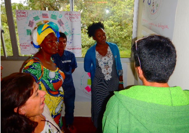 Para comenzar, y siguiendo la planeación definida en el taller de arranque de la GSI y el evento regional de intercambio de aprendizajes, los dos realizados en Ecuador, se adecuaron los términos de referencia para tener en cuenta avances previos en el país relacionados con el reconocimiento de las áreas de conservación comunitaria, movimiento que tomó el nombre de «Territorios comunitarios para la vida». Por otro lado, Carolina Amaya, punto focal del Consorcio en Colombia y coordinadora del proyecto desde la organización estratégica, trabajó en la adecuación intercultural de la definición TICCA y dirigió la realización de un video para acercar el concepto a las comunidades indígenas, negras y campesinas de Colombia. Ambos documentos pueden ser consultados en el sitio web del CEMI y del PPD Colombia.