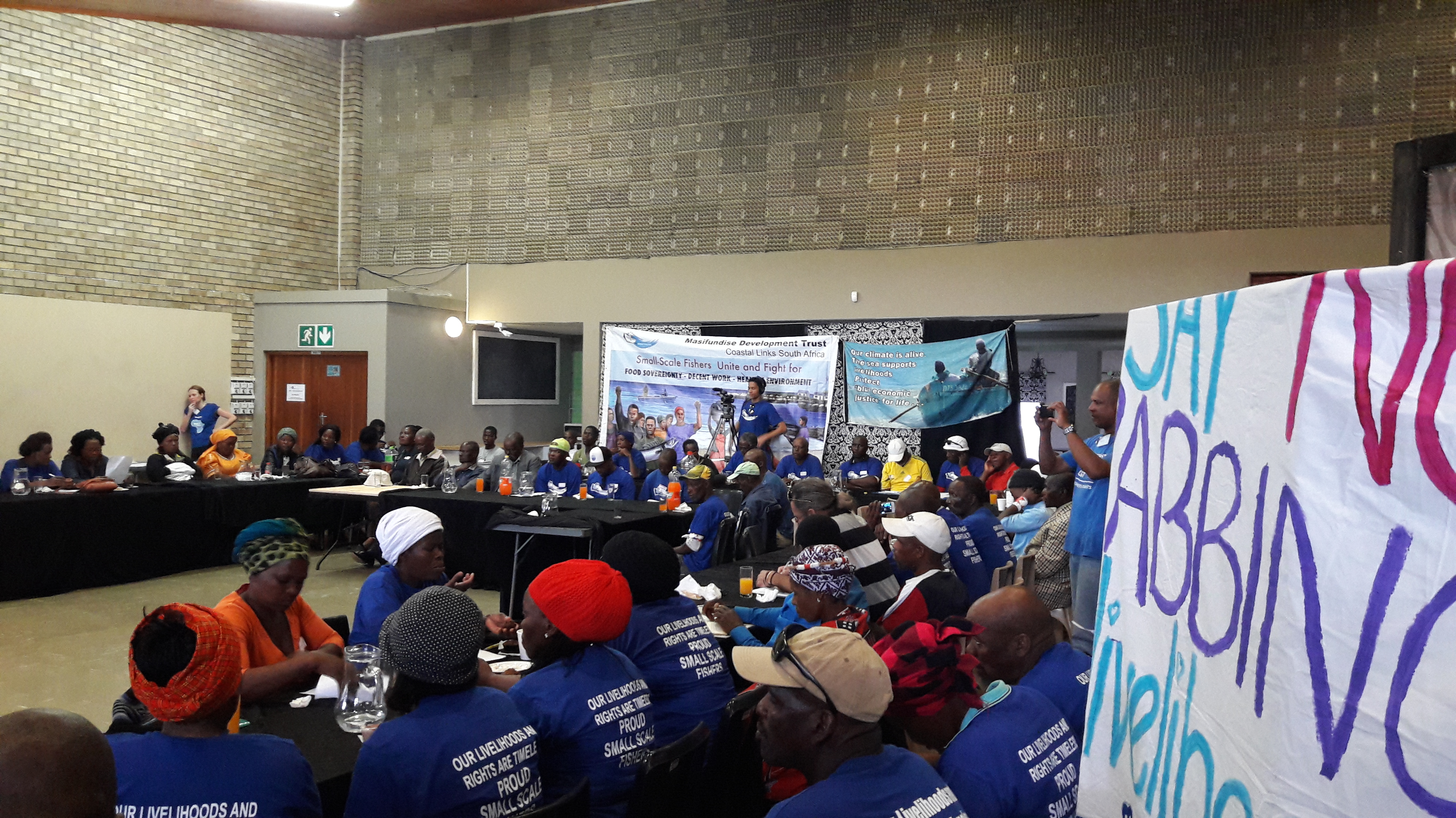 On November 21, 2017, Masifundise together with Coastal Links, a national umbrella network of small-scale fishing communities, hosted two High Level Policy Roundtables with government officials from the Department of Environment, Department of Agriculture, Forestry and Fisheries, provincial and local government as well as conservation agencies and other organisations in order to voice their concerns about the extractive nature of Operation Phakisa. On World Fisheries Day on the 21 November fishers in the Eastern Cape together with their social movement partners hosted a protest through the streets of East London.